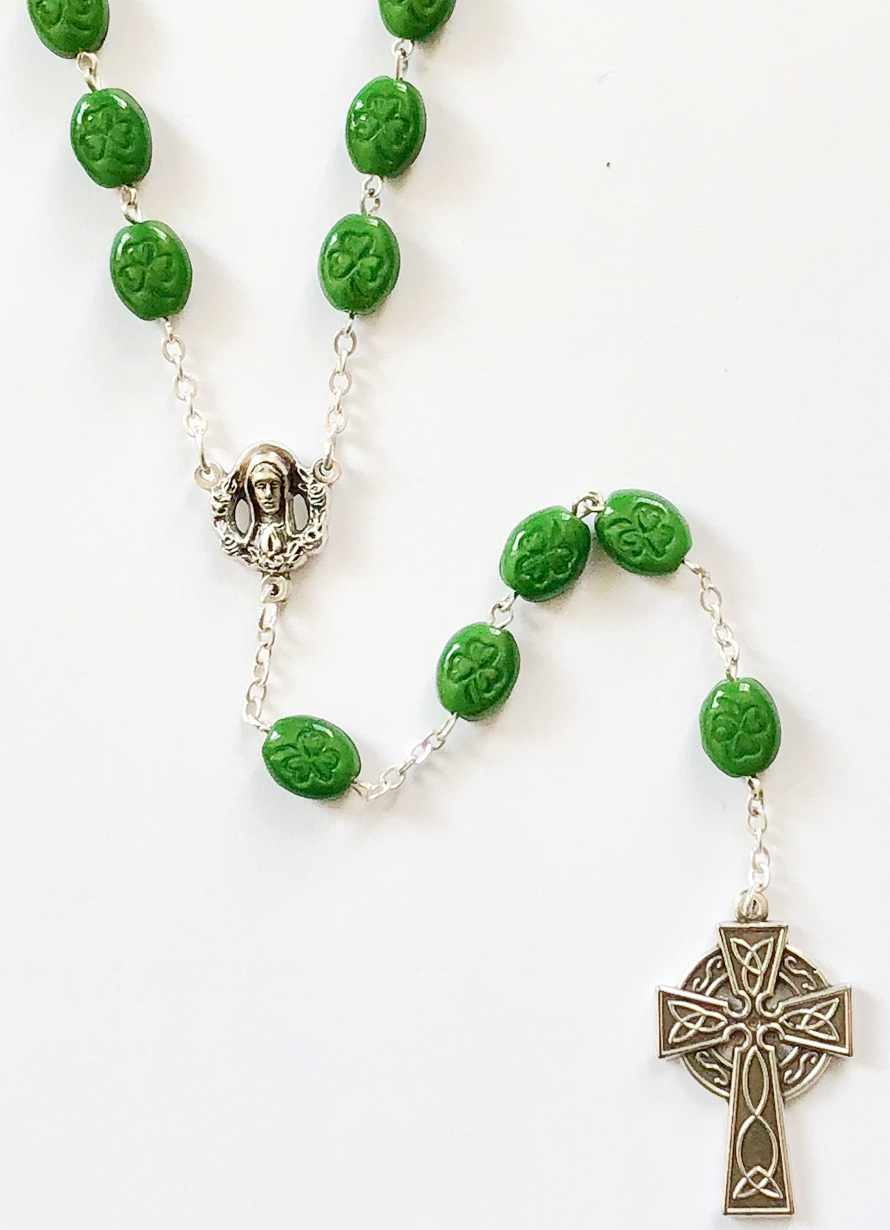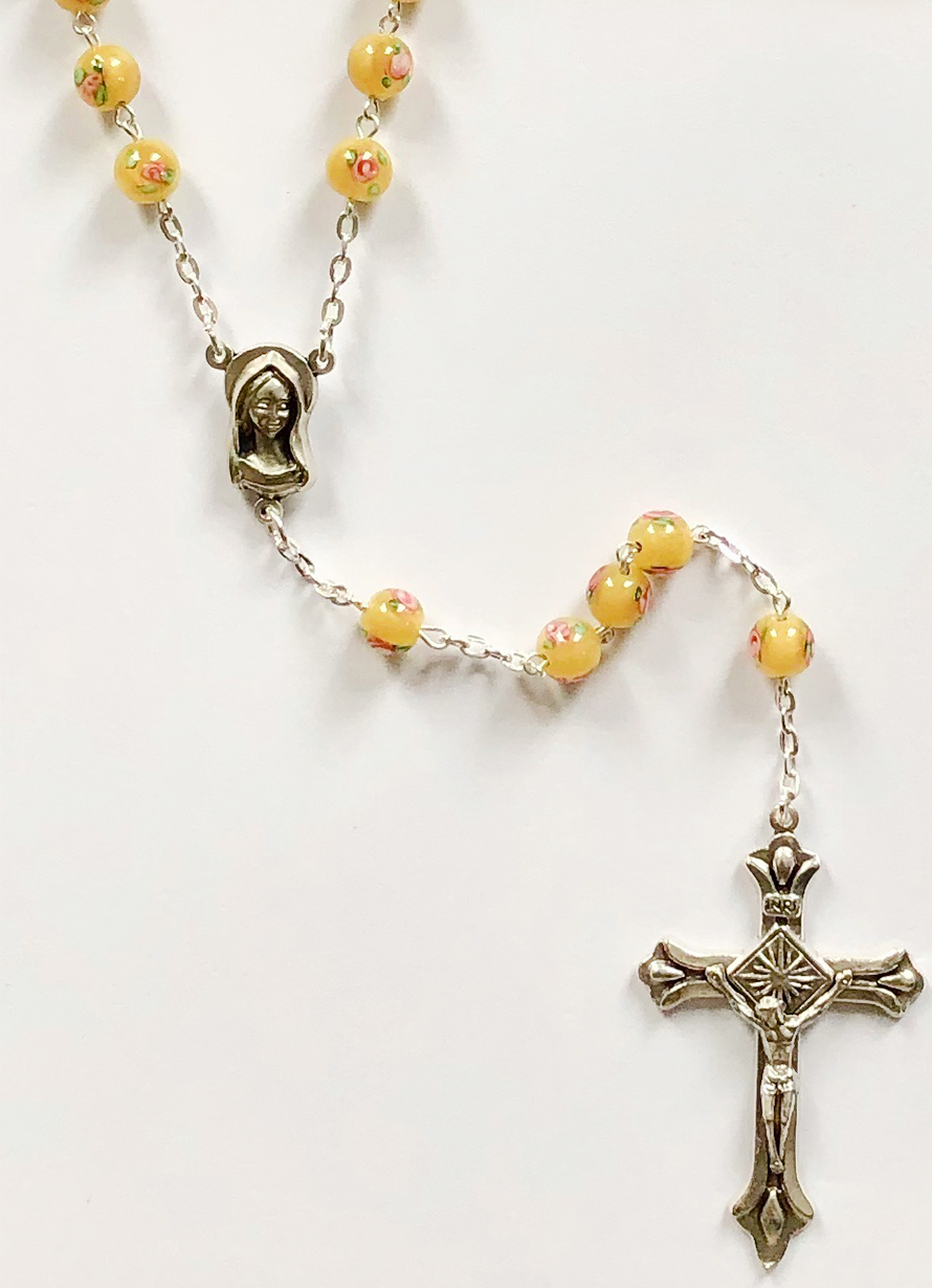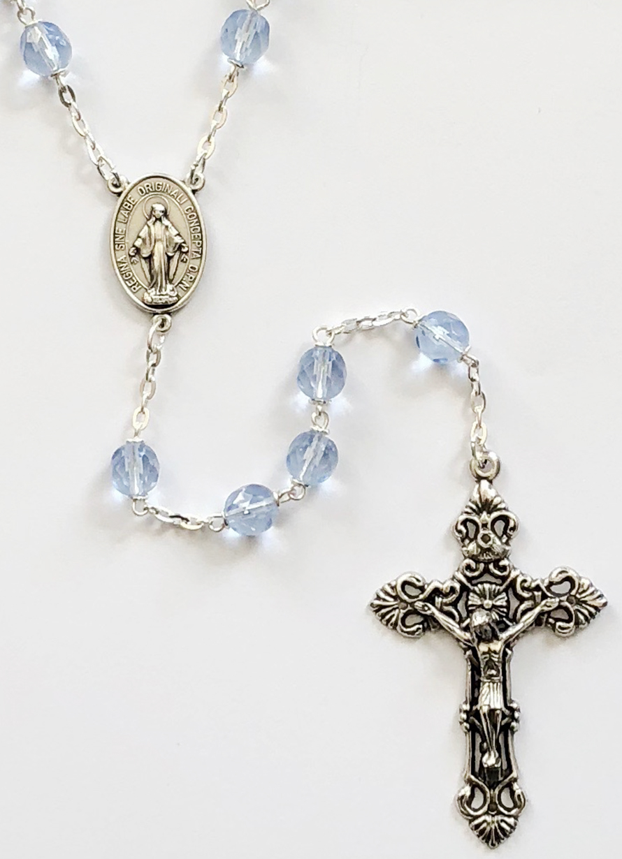 Our rosaries feature a variety of Czech beads — pressed, fire-polished, lamp, pearl, and wooden — available in many color combinations.